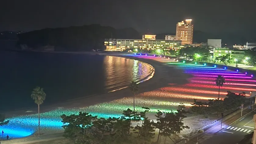 「SHIRARAHAMA LIGHT PARADE by FeStA LuCe」は全長620mに渡る白良浜の白砂の浜を光と音で彩るライトアッププロジェクトで、定期的に音楽と演出が織りなす幻想的な演出も実施されます。
