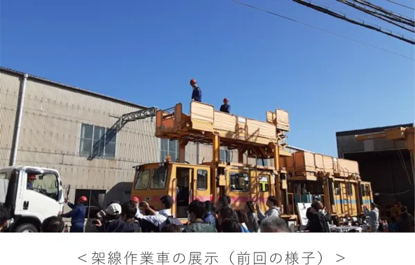 尼崎車庫会場(事前応募制)では、普段入ることのできない車庫工場内の装置見学や車両見学のほか、毎回好評のミニ阪神電車の乗車体験や車掌体験、洗車機通過体験、道床つき固め作業体験などのイベントを実施します。また、事前応募不要の尼崎城址公園会場では、お子様に好評のレールトイ展示や阪神バス・阪神タクシーの展示に加え、ボートレース尼崎の出張Moooviあまがさきやキッチンカーもお楽しみいただけます。