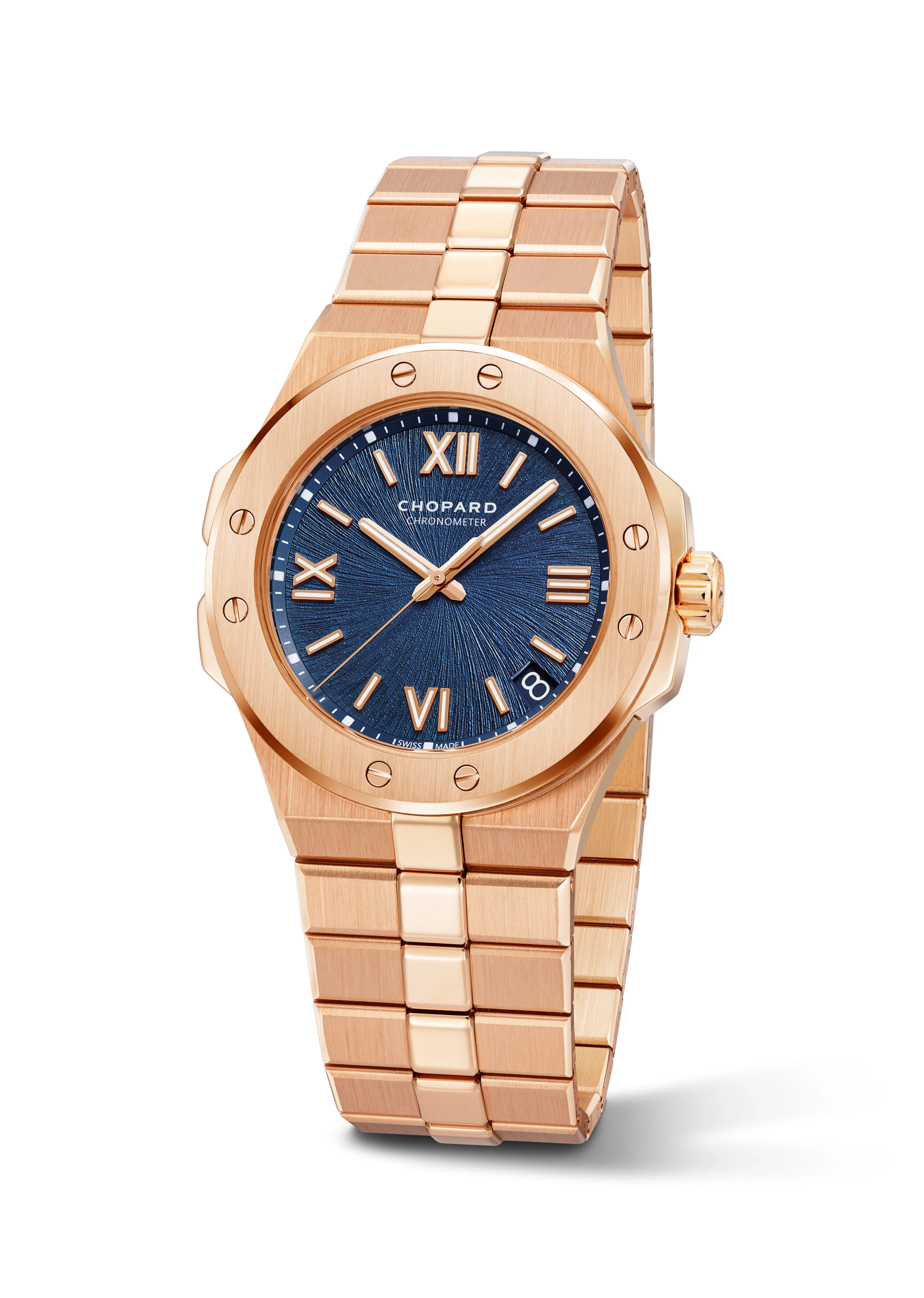 エシカルローズゴールド製ケース&ブレスレット、自動巻き、41mm径、アレッチブルー文字盤