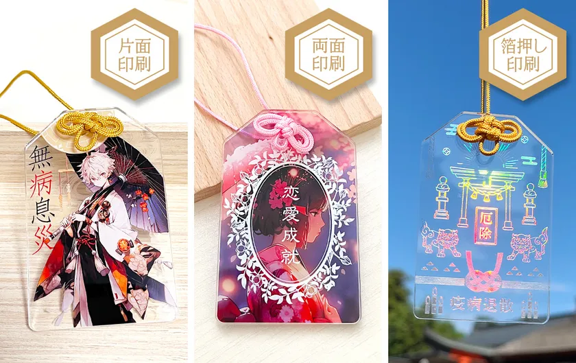 アクリルお守りは、神社などの授与品としてもたいへん人気のアイテムです