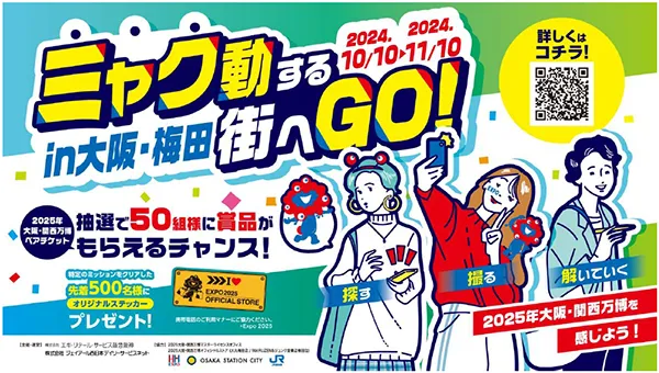 株式会社エキ・リテール・サービス阪急阪神と株式会社ジェイアール西日本デイリーサービスネットは、協同で大阪・関西万博の「熱気」を高めるため「ご当地ミッションラリー」を活用し、この度「ミャク動する街へGO!~探す・撮る・解いていく in 大阪・梅田~」を2024年10月10日(木)から11月10日(日)まで、大阪駅・大阪梅田駅を中心に開催いたします。
