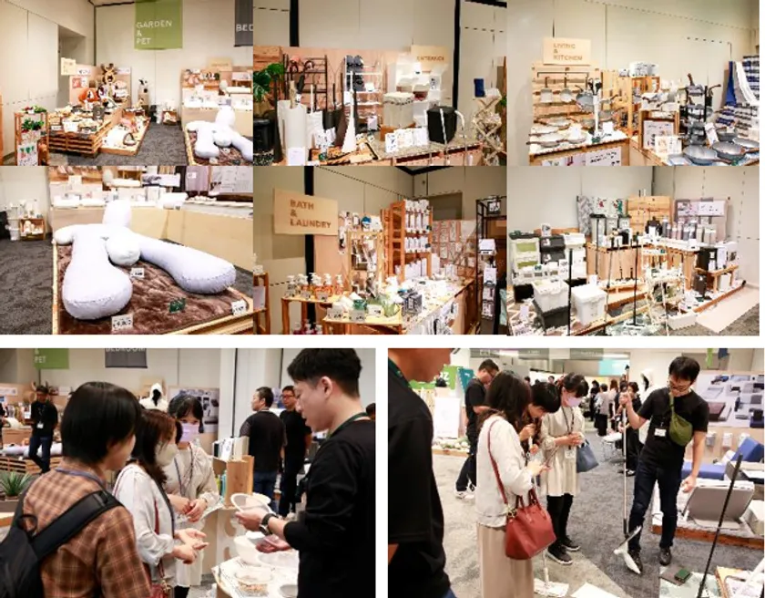 会場にはキッチン、庭、寝室、リビングなど、シーンごとに最適な商品を展示。キッチンコーナーには、冷蔵庫の収納改善=スペースや時間を有効活用できる「冷蔵庫収納Skitto」「レンジで楽チン スチーム調理バッグ」「鮮度が落ちにくい保存容器」などをディスプレーしました。庭のコーナーには、「撒くだけで防草出来る人工砂」「そのまま使える除草剤」など草むしりや除草作業をラクにするアイテム以外にも、周囲に気を遣わず開閉可能でベンチにもなる「静かに収納できるアルミ収納ベンチ」など道具や用品を収納できるアイテムも用意。寝室などの室内のアイテムには、ピタっとズレにくくセットがラクな「保温性のある敷パッド Pitapa」や快適な室内干しを実現する「ロング丈も掛けられるパタラン」などの機能を、来場した方に体感していただきました。