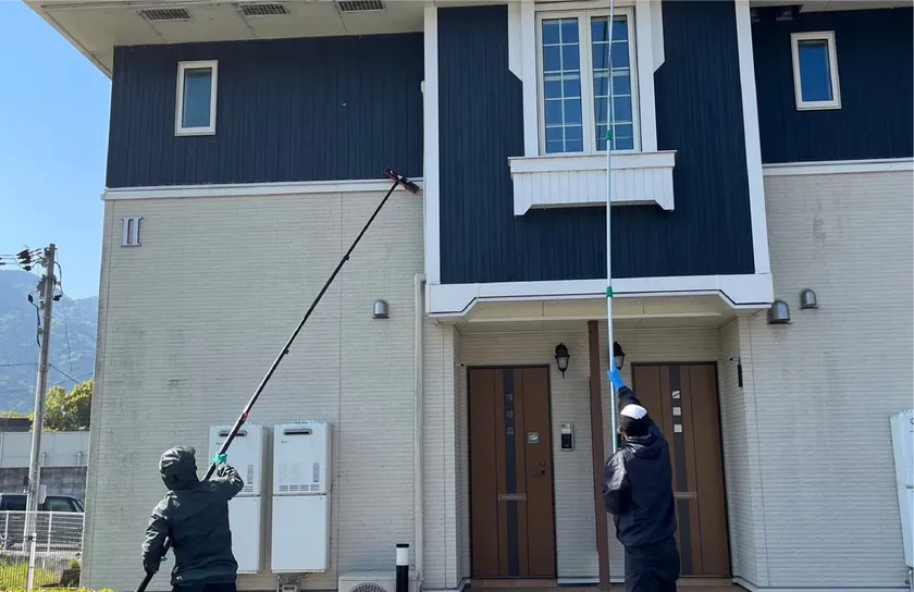 独自のSKAT工法による外壁洗浄サービスで、これまでの外壁洗浄の常識を覆し、外壁リフォームにかかるコストを大幅にカット。足場・高圧洗浄機を使用しないこの工法で「早い!安い!綺麗!」を実現し、お客様に大変ご好評いただいております。