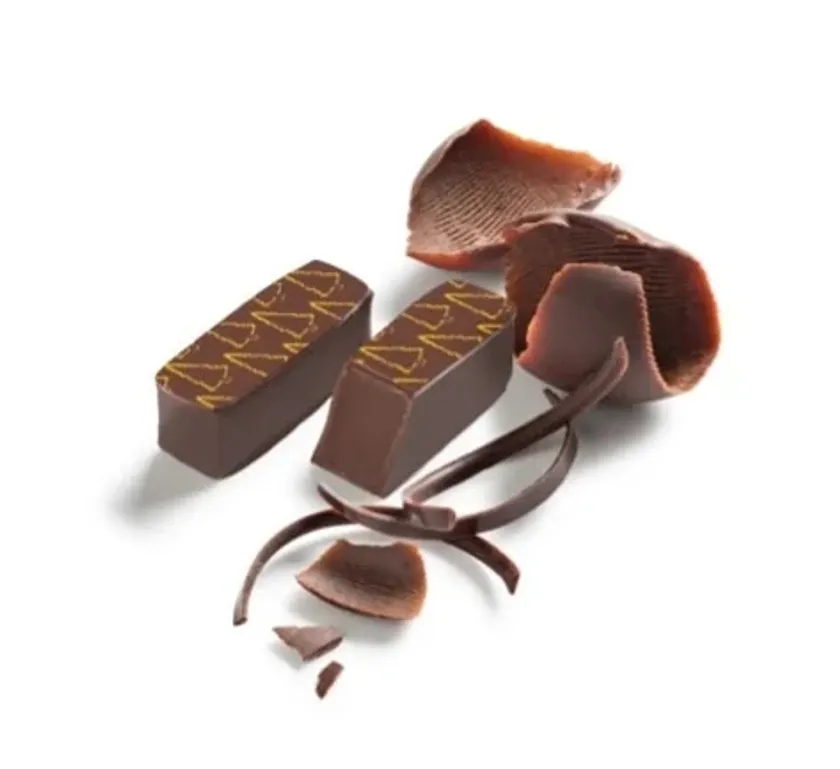 クルミとクレープダンテル入りのミルクチョコレートのタブレット。