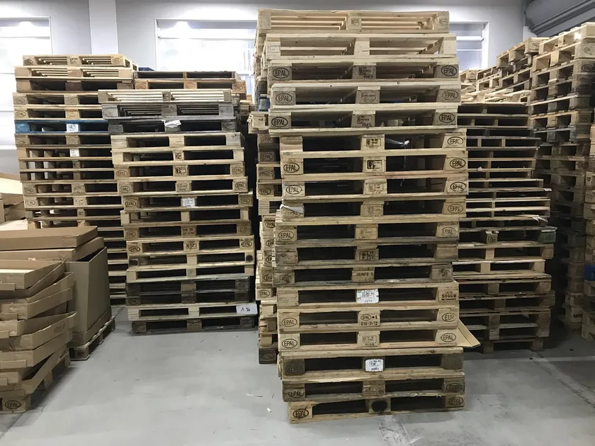 倉庫で発生した大量の廃棄パレット
