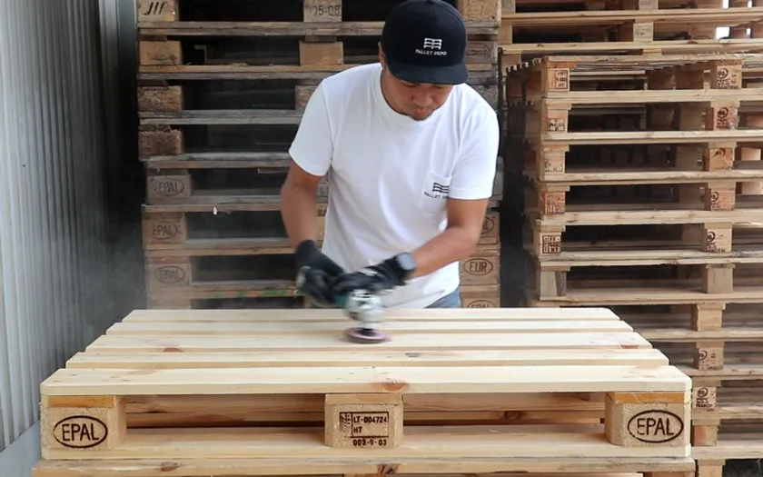 パレット再生作業の様子。頑丈で何度でも使えるのでゴミにならない。