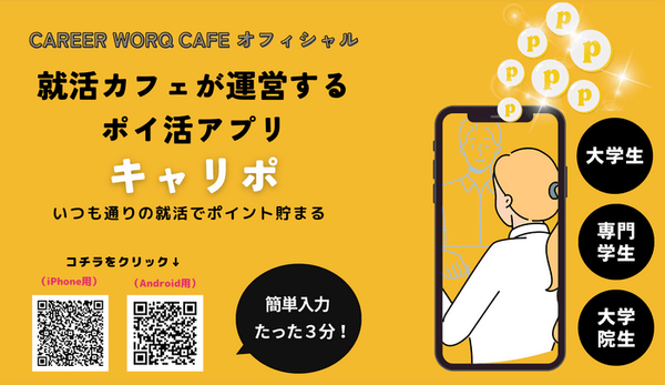 事業内容:就活カフェ「Career Worq Cafe」の運営、就活アプリ「キャリポ」の提供
