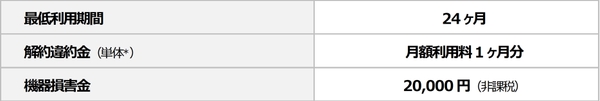 - USEN光 Plusとセットの場合、当サービスの違約金は発生しません。