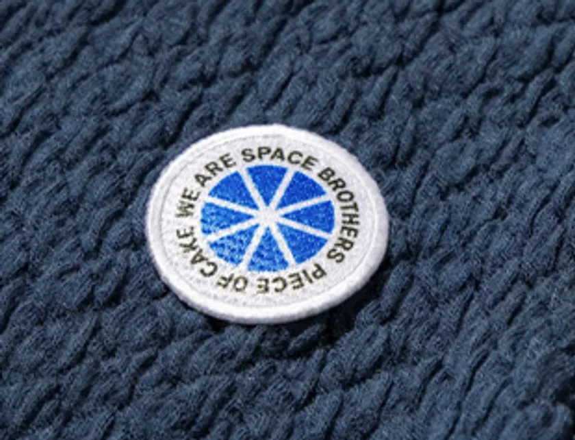 宇宙兄弟限定モデルは、作中に登場するシンボルマークワッペンがついたデザインです。シンボルマークとは、“世界各国”や“我々一人一人”を意味するブルーのケーキ型のpieceと、“今光り輝く”ことを意味する、星が輝くような白い放射線が組み合わさったデザイン。