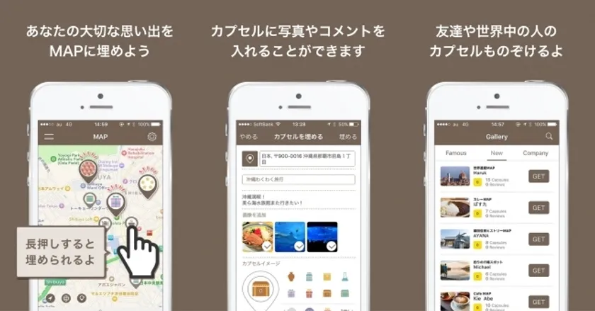カプセルピンには開封条件(場所や日時など)を設定できます。開封条件を組み合わせることで、「1年後に○△公園に訪れたとき」のみ投稿内容を開封(閲覧)できるなど、気軽にデジタルタイムカプセルをお楽しみいただくこともできます。現在まで、数多くのタイムカプセルをご登録いただいております。