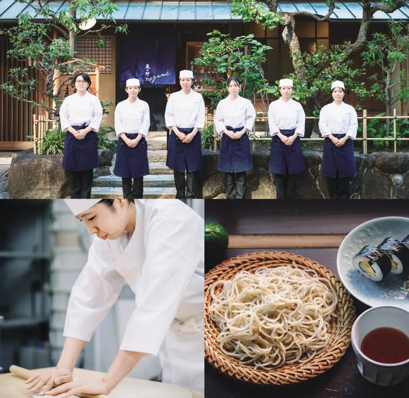 手打ちをする女性料理人は4名、接客担当が2名、内時短勤務で働くお母さんは4名です。仕事も家族もどちらも大切にしてもらうため、平日・ランチタイムのみの営業としました。「大阪にも美味い蕎麦を食べさせる店がある」とかつて評価されたように、原点に立ち戻り、蕎麦打ちが好きで働く女性社員を起用した美々卯の新しい試みです。尚、全館の改修が完了し、営業体制が整った後には美々卯本店としての営業を再開いたします。