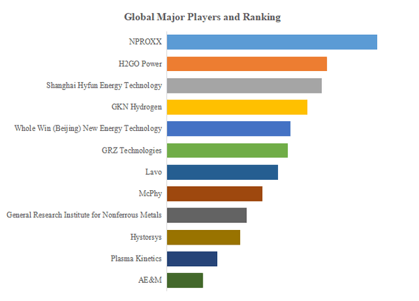 YHResearchのトップ企業研究センターによると、固体水素貯蔵ソリューションの世界的な主要製造業者には、NPROXX、H2GO Power、Shanghai Hyfun Energy Technology、GKN Hydrogen、Whole Win (Beijing) New Energy Technology、GRZ Technologies、Lavo、McPhy、General Research Institute for Nonferrous Metals、Hystorsysなどが含まれている。2022年、世界のトップ5企業は売上の観点から約39.0%の市場シェアを持っていた。