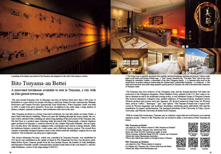 10月7日に国内外で発売された「Japan Brand Collection2025 Luxury Selection」に、「森の芸術祭 晴れの国・岡山」が開催されている岡山県北の、「美都津山庵 別邸(びとつやまあん)」と「ヴィラ美都奈義(びとなぎ)」が掲載されました。