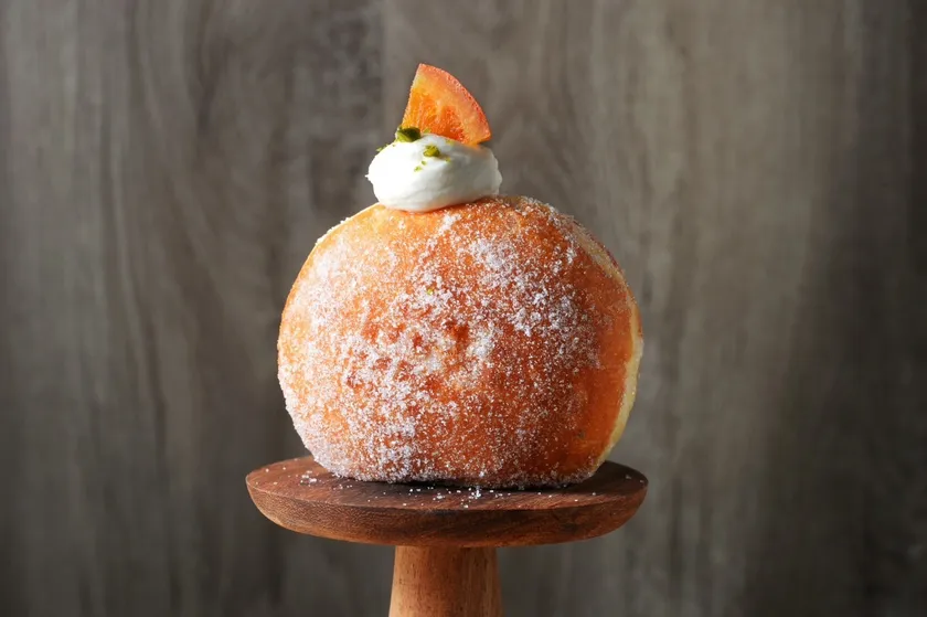 通常メニューでは住吉店だけしか買えない、「マーマレード」380円も販売。北海道産の生クリームに甘さと苦味が絶妙な低濃度オレンジマーマレードをブレンド。さらに刻んだオレンジをふんだんに使用、果実感が溢れ出して止まらない住吉店限定生ドーナツです。