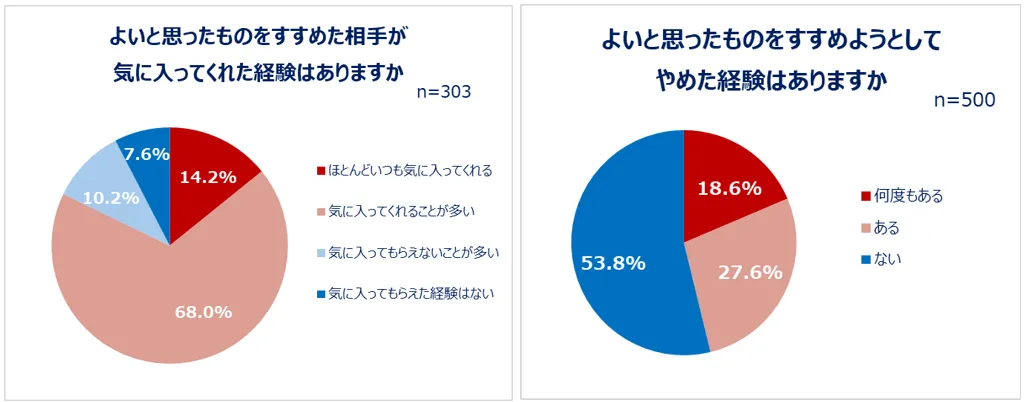 2.すすめたものを相手が気に入ってくれた経験がある人は8割以上!