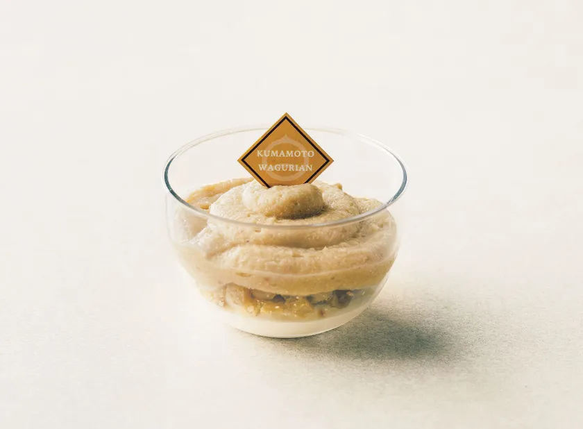 採れたての熊本県産和栗の風味を、なめらかなチーズクリームが引き立てるモンブラン。3層構造で食感も楽しめる。