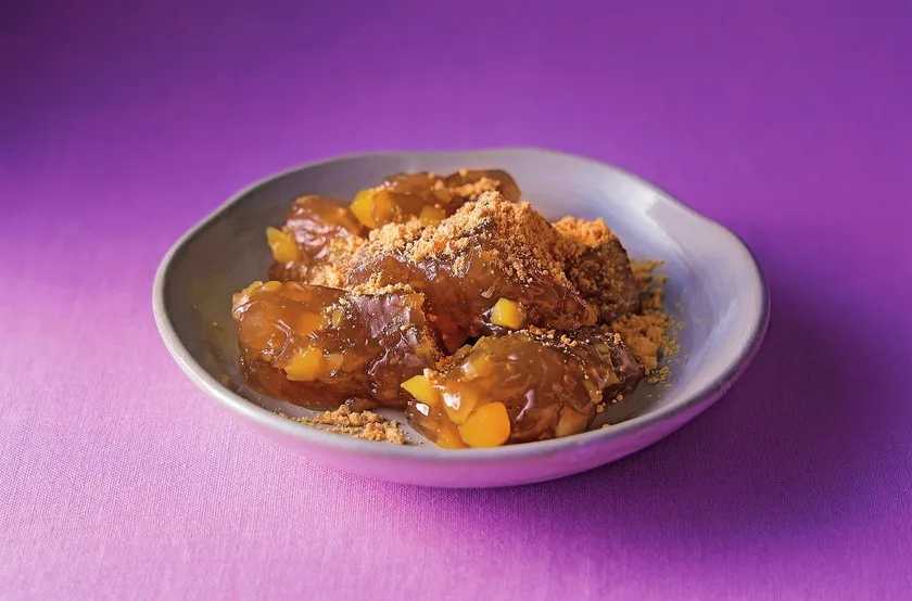 1時間以上、本練りしたわらびもちは、やわらかくてプルプルの食感。