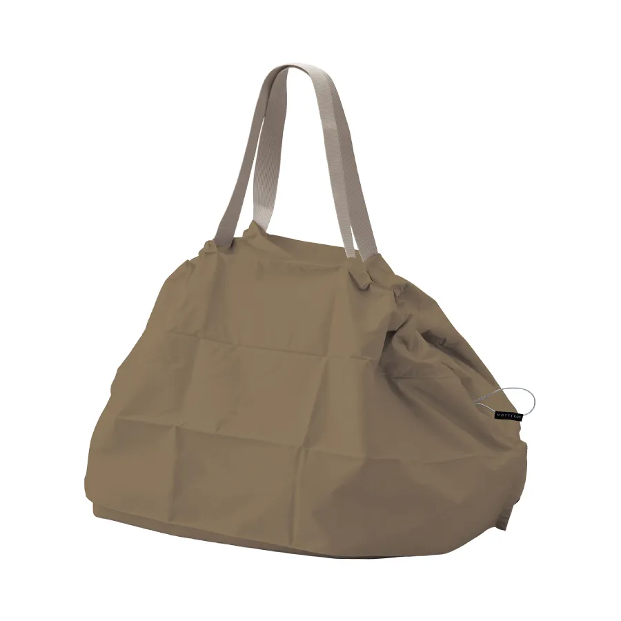 バッグ使用後には、折り目にそってパタンパタンと迷わず簡単にたためる設計で、たたんだ後もゴム紐でまとめるだけで非常にコンパクトに持ち運べる仕様です。