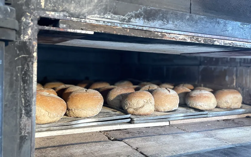 香ばしい香りとモチモチの食感が自慢の石窯パンは、リピーター続出の大人気商品。(カンパーニュ 1,050円~)