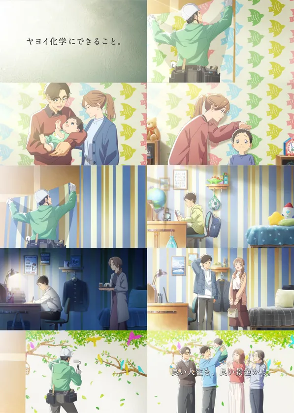 新CM第二弾「ヤヨイ化学にできること。」篇は、壁紙施工用接着剤の国内トップシェアを誇る同社が「良い人生を、良い景色から。」というコンセプトのもと、「インテリア用接着剤で美しく心地よい空間を創り、暮らしに豊かさを創る。」という思いを込めて製作したCMです。
