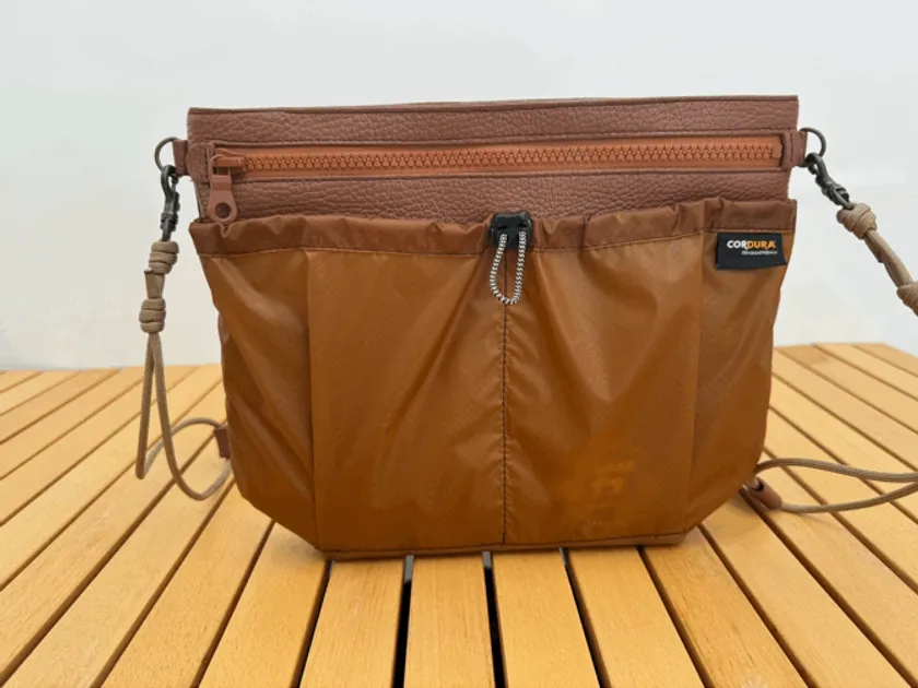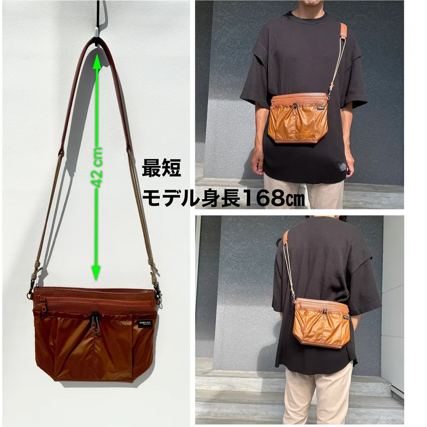 ・スリムなサコッシュが底マチ+9センチ。縦に+10センチ拡張! 出先で増えたものをしっかり収納できます。 ・上質なイタリアンレザーと丈夫で軽量なCORDURA(R)を使用。 収納ポケットは水に強い生地で安心。 ・アウトドア好きの革職人が使いやすさに拘ったデザイン。 4つの収納スペースで荷物ごとに仕分け。