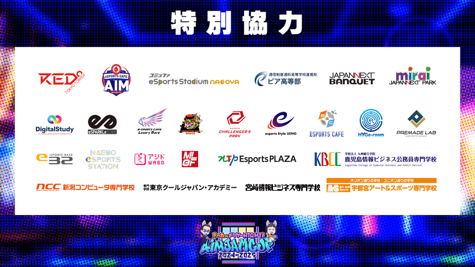 本大会は上記eスポーツ関連施設、eスポーツ関連学校による協力のもと実施致します。
