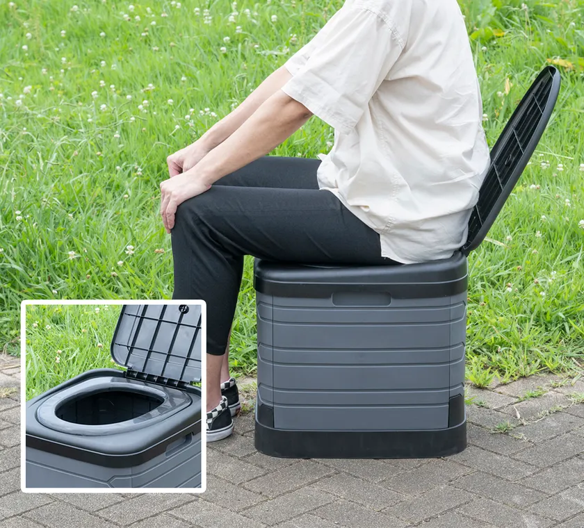 普段は椅子や踏み台・コンテナBOX、 非常時は簡易トイレとして活躍! 折りたたみ簡単『ポータブルトイレ+簡易トイレ10』を新発売