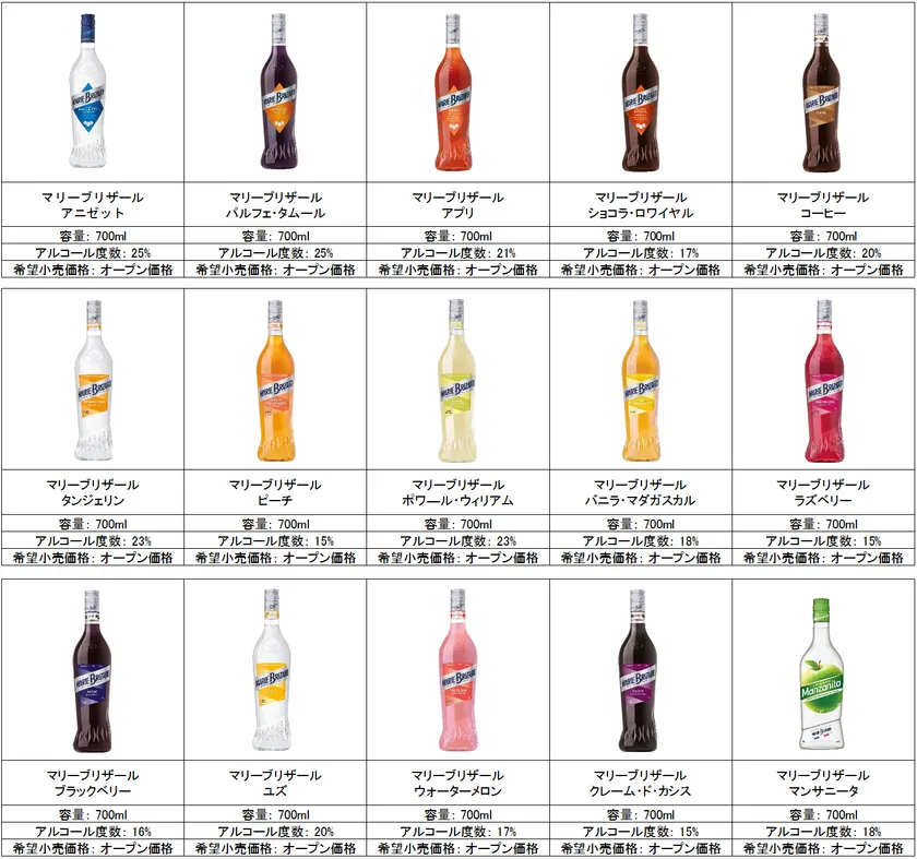 株式会社明治屋(本社:東京都中央区、代表取締役社長:磯野 太市郎)は、フランスのマリーブリザール・ワインズ&スピリッツ社が所有の「マリーブリザール」15アイテムの販売を開始いたします。