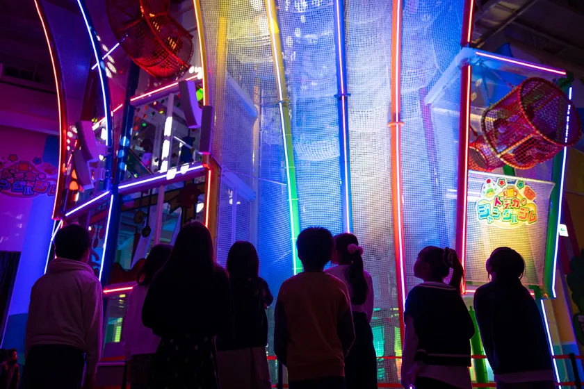 ネット型屋内最大級の「超ドデカイジャングルジム」をカラフルで鮮やかにライトアップし、音楽とあわせたイルミネーションをお楽しみいただけます。