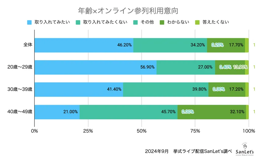 また年齢別で見ると、20~29歳の56.9%がオンライン参列を取り入れてみたいと答えており、年齢が低いほどオンラインで招待することへの抵抗感が少なくなっています。