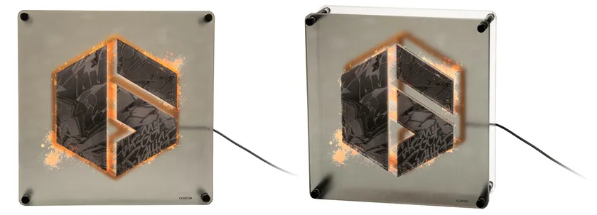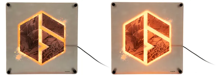 「ストリートファイター 6」のロゴをアクリルへのプリントで表現したプリント部(前面)と、「6」をかたどったLEDのライト部(後面)の二層構造です。LEDネオン風ライトの光が、後方からロゴを美しくライトアップします。