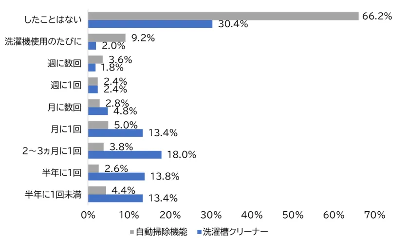 洗浄クリーナーは3割が使用しない一方で月1回未満の使用が5割>