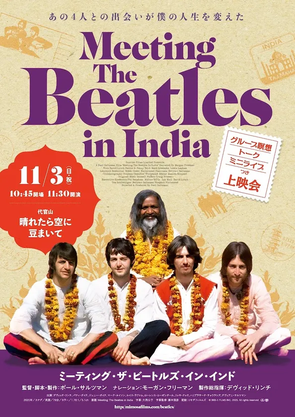 一般社団法人マハリシ総合教育研究所(本部:東京都千代田区麹町、代表:鈴木 志津夫)は、映画『ミーティング・ザ・ビートルズ・イン・インド』の上映会(グループ瞑想+トーク+ミニライブつき)を、2024年11月3日(日・祝)東京・代官山のライブハウス「晴れたら空に豆まいて」で開催いたします。