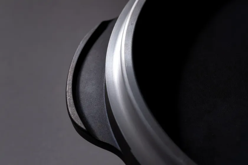 旧来の羽釜に囚われることなく、素材と機能、現代の生活様式に向き合い、一貫した“相応しいデザイン”が実現されている。底面部のフィンは熱効率向上を目的としたものであるが、同時に意匠として類を見ない独自性をもたらしている。