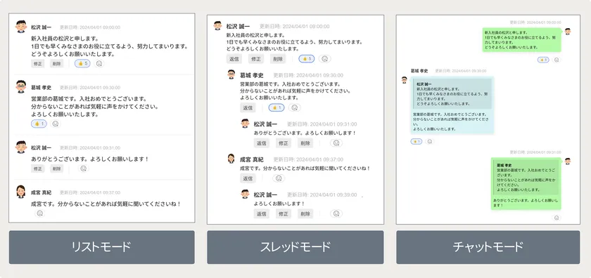 コメントコンポーネントはコメントの表示形式としてリストモード、スレッドモード、チャットモードの3種が利用可能です。
