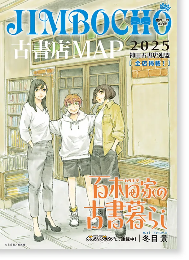 集英社「グランドジャンプ」にて『百木田家の古書暮らし』を連載中の著者・冬目景先生に特別に描いていただいた(!)表紙が目印の「古書店MAP」を今年も発行します。神田古書店連盟の各古書店および、東京古書会館にて無料でお配りいたします。
