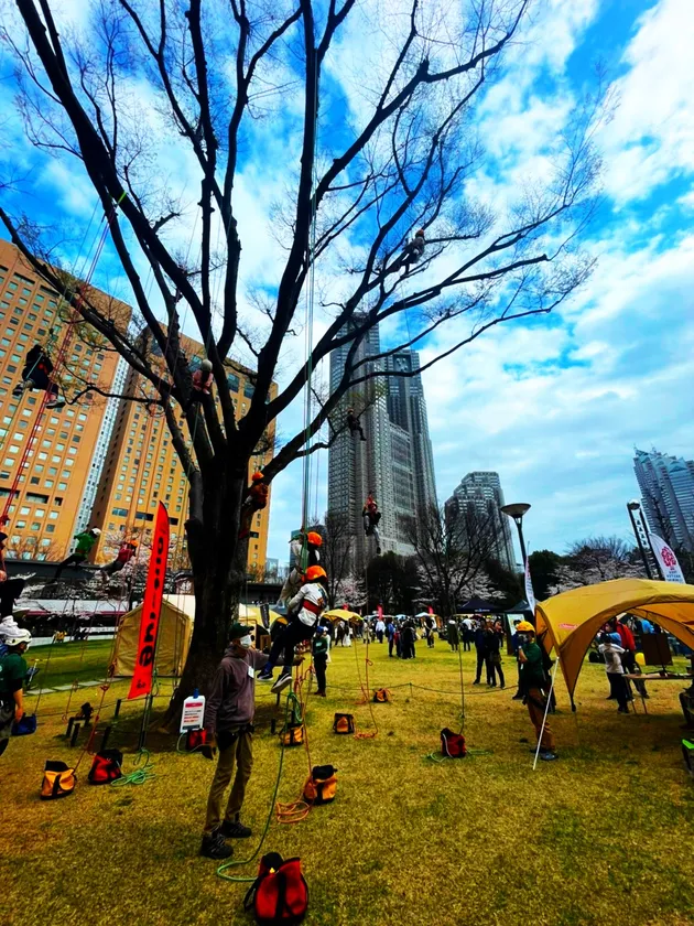 都会のど真ん中でロープワークを使った木登りが体験できる「ツリーイング」や、近年大人気のアウトドアアクティビティ「ボルダリング」や「スラックライン」、毎年大人気の「バンジートランポリン」や「特大スライダー」。