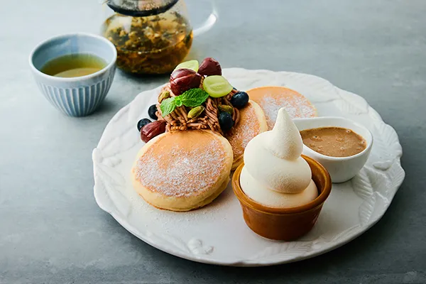 「茶青花」栗の豆乳パンケーキセット 選べるドリンク付き