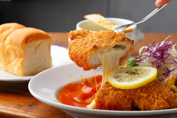 「ミアキッチン」赤鶏むね肉のチーーーーズチキンカツプレート