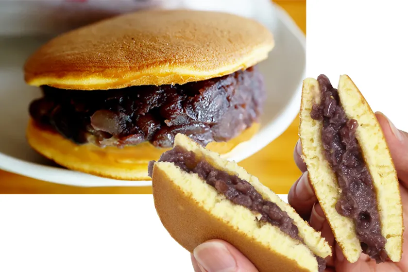 見た目だけでなく、味でも笑顔にするこだわり。どら焼きの皮は丹波地方の新鮮な特大たまごと最高級のきめの細かい小麦粉、そして砂糖とはちみつを使って焼き上げています。植物油脂などを一切入れず、職人たちが季節による温度変化にも注意しながら調合しています。直径8cmにぎっしりと詰められたのは厳選エリモショウズを中双糖で仕上げたこだわり餡子。控え目で上品な甘さです。
