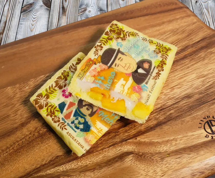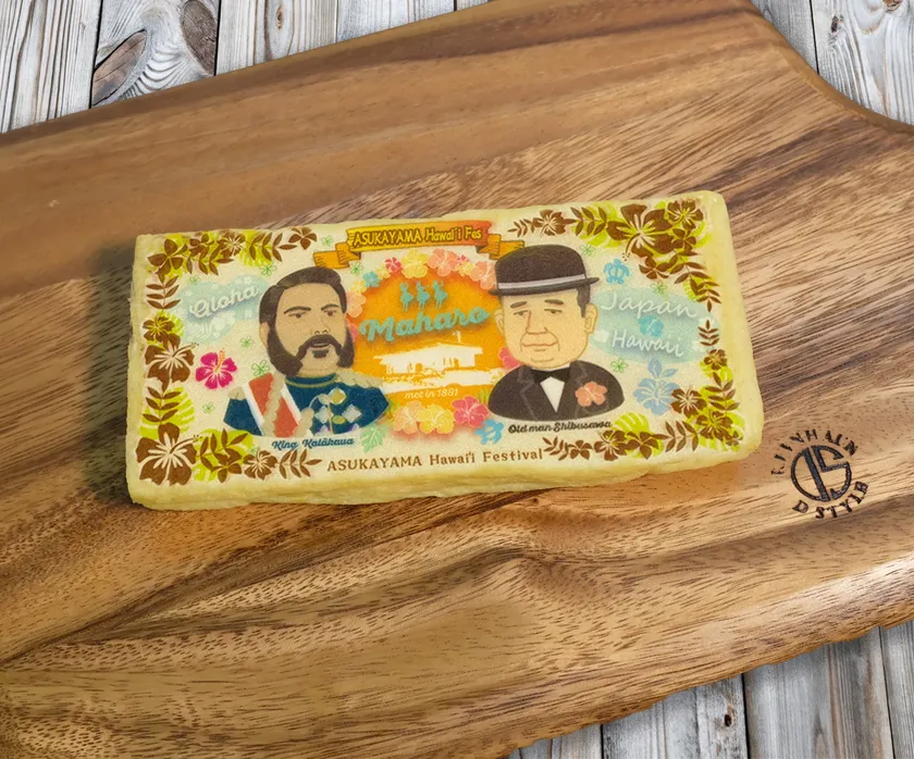 カラーカウア王の来訪及びハワイとの友好を記念し、ハワイアンなテイストに仕上げたお札パン。
