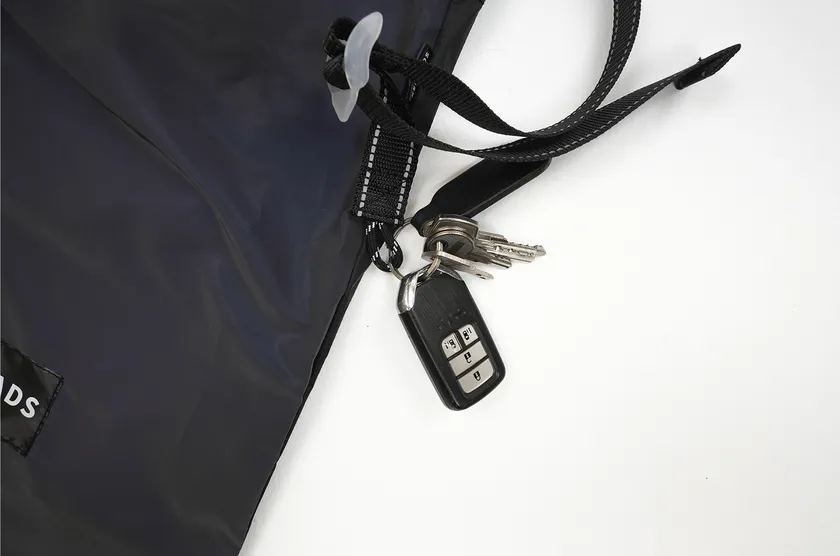 カラビナを使って鍵、ウォーターボトル、ポーチ、チャームなどを取り付けられます。