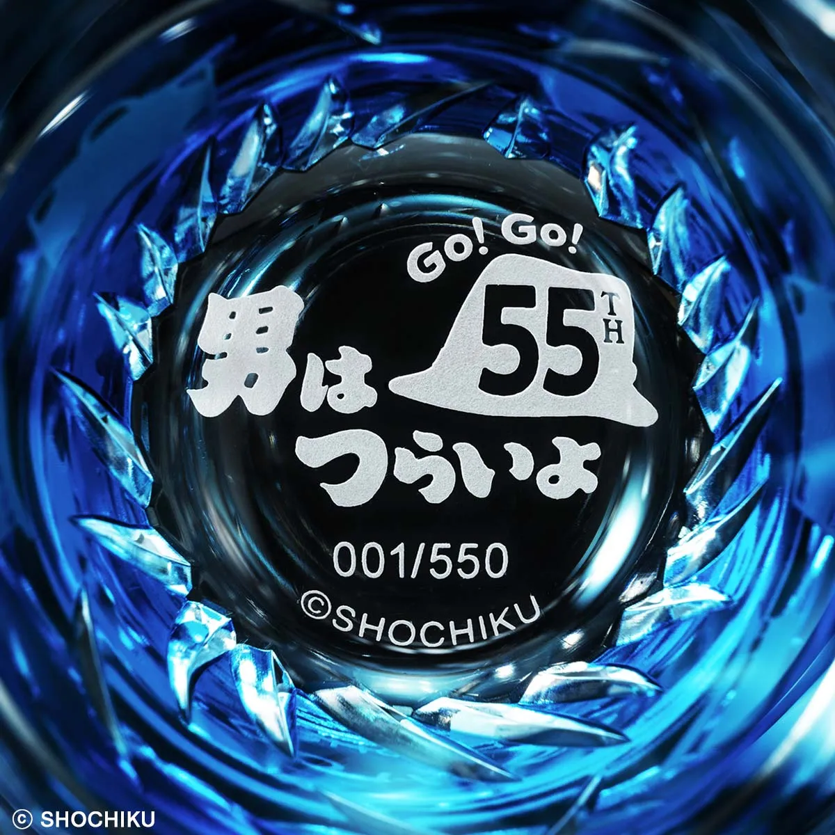 ■グラスの底面には『男はつらいよ』55周年のキャンペーンロゴと、限定550点のエディションナンバーが刻まれています。
