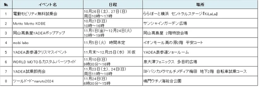 【10月以降の安全講習会・試乗関連イベントスケジュール】