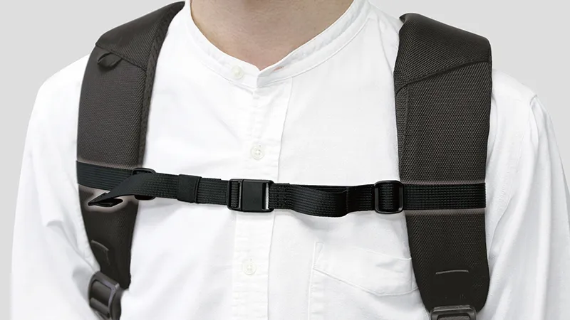 お手持ちのリュックに取り付けてリュックベルトのずれを防ぐチェストベルト