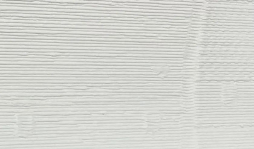 部材の出力時に発生する「積層痕(せきそうこん)」をデザインに取り入れ、ぷくぷくとした独特の質感をそのまま生かしています。塗装は、一度塗りで耐候性や防汚性を持つ特殊な塗料を使用しており、美しさだけでなく、施工コストの削減にも貢献しています。今回は白を使用しましたが、オプションで別カラーもお選びいただけます。