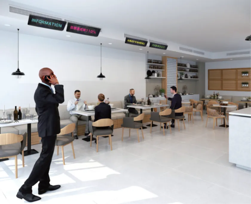 「AD WING」は、エアコンの吹き出し口に取り付けする【風よけ兼デジタルサイネージ】です。店舗内での広告の多くは、壁にびっしりと貼り付けられ、スペースがなくなれば次は天井から吊るされるなど、掲出スペースは限られています。飲食店では、一度貼り付けられた広告が長い間交換されず、ボロボロになるまで貼られている光景をよく目にします。