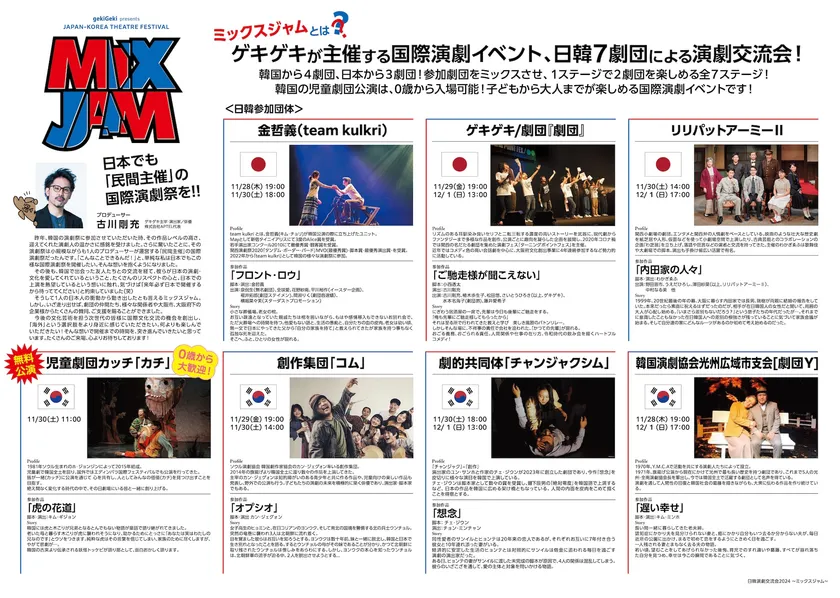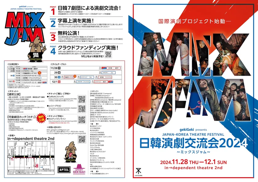 日韓7劇団による国際演劇イベント 「日韓演劇交流会2024~ミックスジャム~」を 大阪・日本橋の劇場にて11月28日(木)~12月1日(日)開催