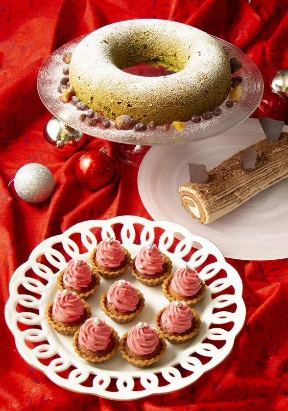 フェアメニューに加えて12月21日(土)~25日(水)の5日間は、京都宇治の老舗製茶所・森半の抹茶で仕上げた「抹茶のエンゼル」や、フランスで長い伝統と歴史を持つ「ブッシュ・ド・ノエル」に、サンタの帽子から着想を得た、キュートな仕上がりに心ときめく「サンタの帽子タルト」もお楽しみいただけます。さらに、イタリア産の天然海塩とハーブ、スパイスで漬け込んで焼き上げたクリスマス気分を高めるローストチキンも登場。皮はパリッと、中はしっとりジューシーなローストチキンは、誰もが虜になるおいしさです。