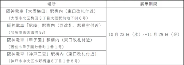 なお、受賞作品は、大阪梅田・尼崎・甲子園・神戸三宮の各駅構内で展示するとともに、本日からホームページに掲載します。併せて、大賞・準大賞の作品は、阪神電車車内にポスターとして随時掲出します。